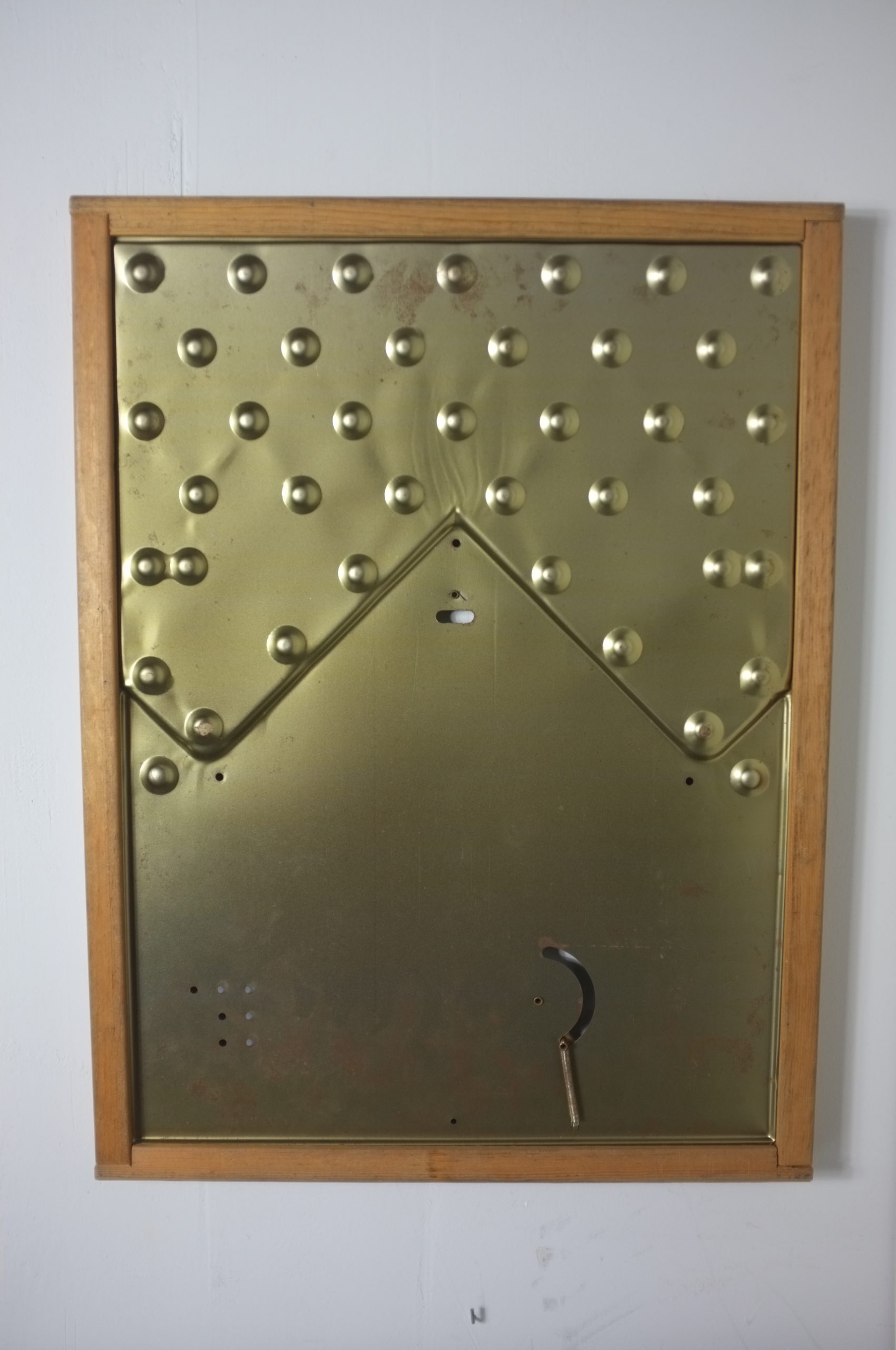 Voorts zien we ook nog de handtekening van Maris, links onder. Deze versie is uit 1962 en het serienummer is 3379. Bij het spel horen een marmeren knikker en 7 zogenaamde “player pegs”, gekleurde pinnetjes die in het scorebord kunnen worden geplaatst.